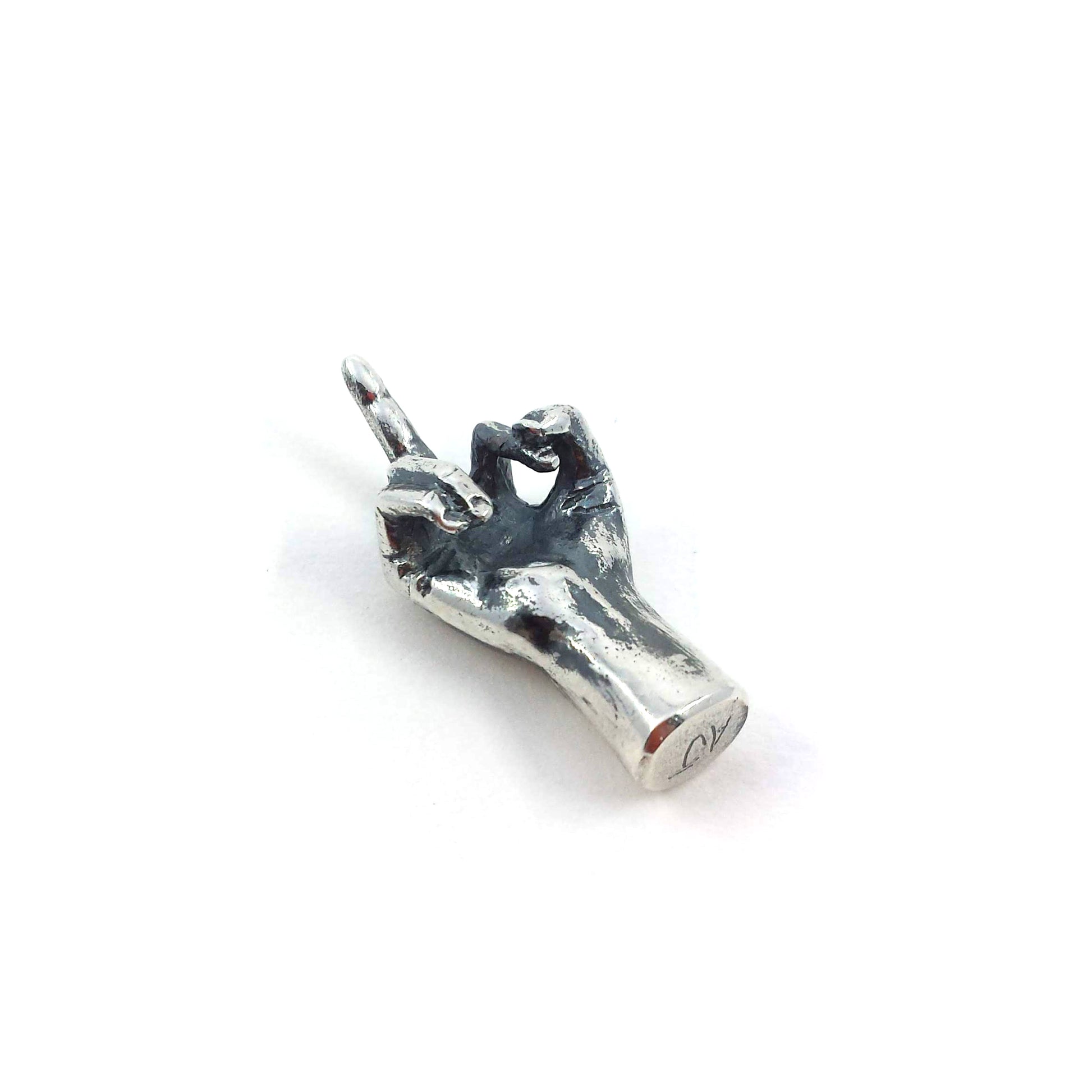 Flip the bird to everyone you know with this hand-carved middle finger pendant charm! Each charm is cast in sterling silver and finished by hand, including a slight patina to darken the recesses.