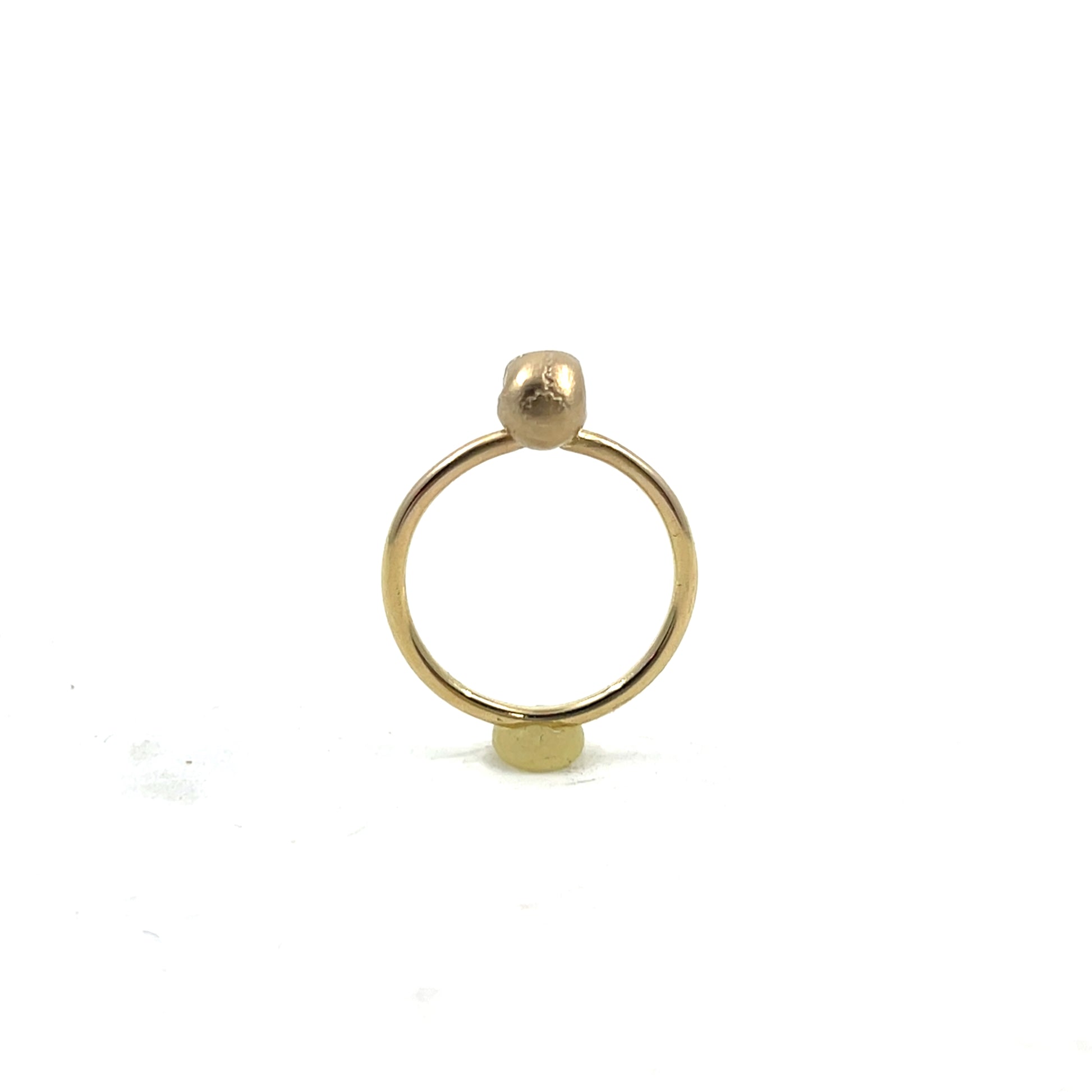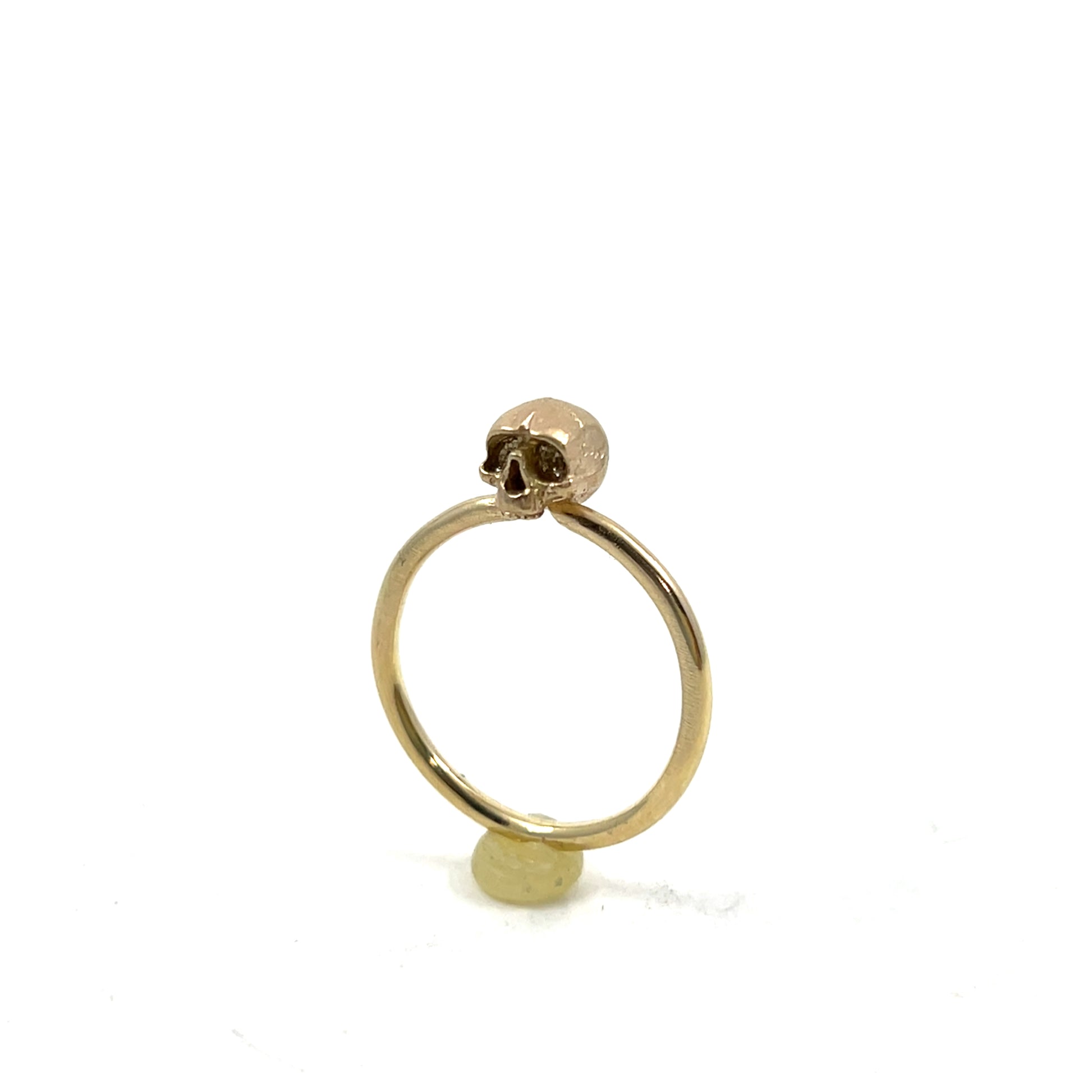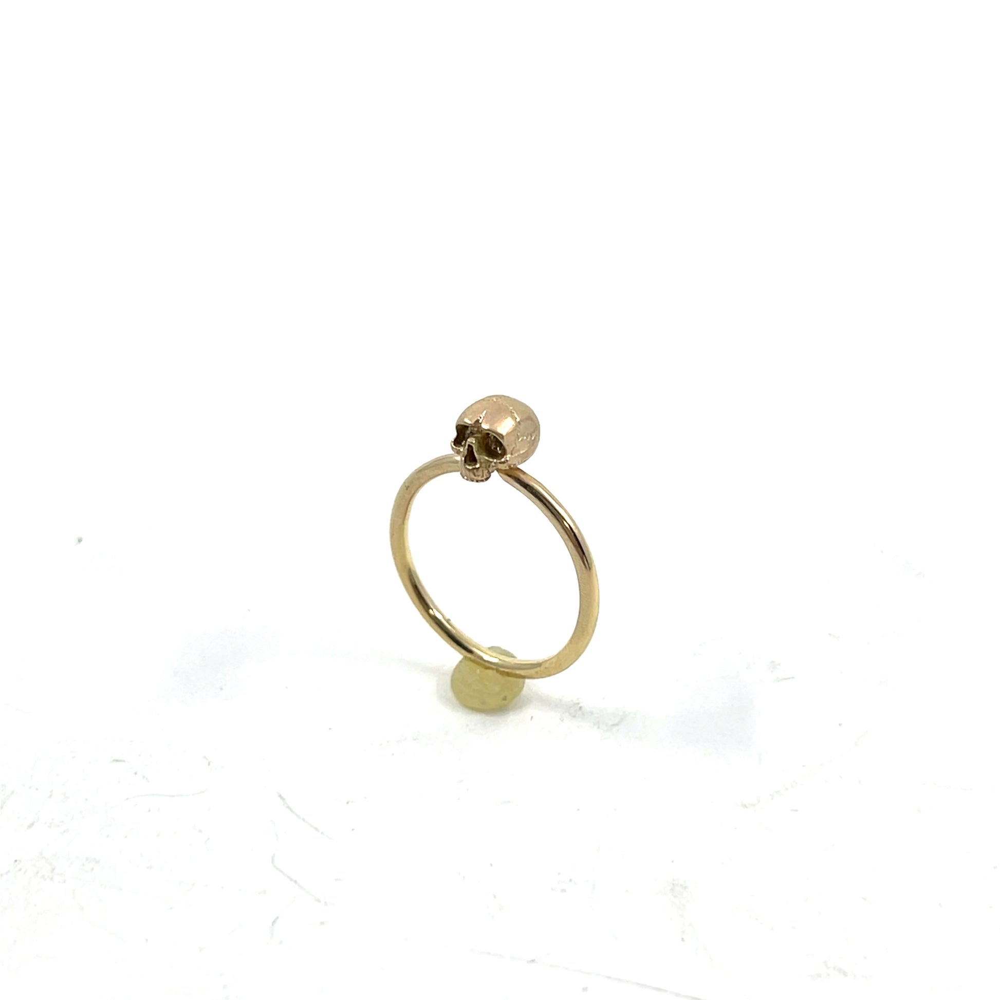 This tiny skull ring is lightweight and looks unassuming at first glance. From a distance, it looks like a small ring with possibly a plain sphere or even a small solitaire setting upon the finger. Upon closer inspection however, you see the detail. A classic piece of memento mori; this ring is a reminder that life is precious and to enjoy it while we're living it.